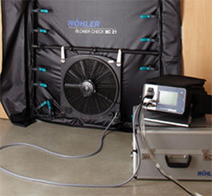 Durch normierte Prüfverfahren (DIN EN 13829) wird die fertiggestellte luftdichte Ebene und / oder der fertiggestellt Baukörper mit Unter- bzw. Überdruck beaufschlagt und die Menge an ausgetauschter Luft festgestellt.